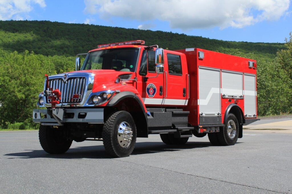 The district’s hilly, orchard-covered terrain and seasonal wildland threats require versatile apparatus. The KME Ridgerunner Pumper provides all-terrain capability and reliable suppression performance, supporting the department’s operations in both rural and interface environments.