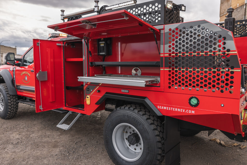 The SeaWestern EV Model 1 is a purpose-built wildland apparatus platform developed to meet the evolving demands of departments across the Western United States. Designed and engineered in-house, the Model 1 reflects a standardized, configurable, proven approach to wildland apparatus—focused on durability, performance, and long-term serviceability in the field.